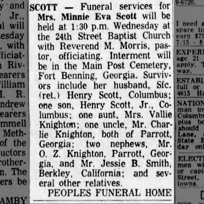 The obituary is of my paternal grandmother. Her name was Minnie Eva Jackson Scott. She died before I was even thought of. My father was 12 years old when she died.